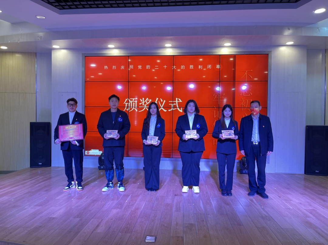 在游戏中寓教于乐,同学们通过对二十大相关词汇的解答、描述以及演绎,加深了对相关精神的理解,推进二十大精神入脑又入心,争做时代新人。伴随着诗朗诵《二十大之歌》,游戏逐渐进入尾声,经过数轮角逐累计得分,本次知识竞赛获得一等奖的队伍是学习强国队,获得二等奖是强国有我队,获得三等奖是不忘初心队,获得优秀奖分别是心中有党队和青年先锋队。