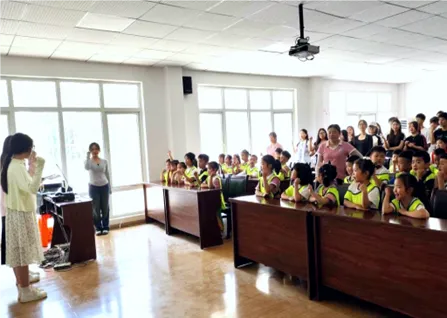 面对武湖中心幼儿园胜海分园的小朋友们,主持人杨祎琪同学进行了开场介绍,通过极具亲和力的表述,充分调动起小朋友们对此次活动的好奇心和积极性。