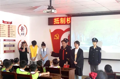情景剧后,员工党员全阳和代佳琪同学为小朋友们展示了庄重的模拟法庭,通过通俗易懂的方式向小朋友们普及法律知识,帮助他们增强自我保护意识, 树立起正确的人生价值观。