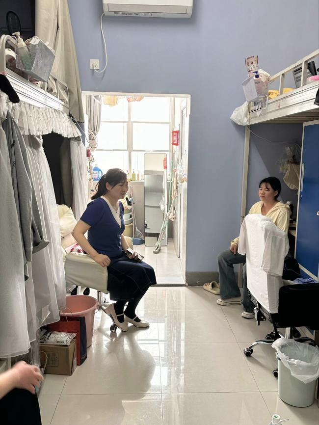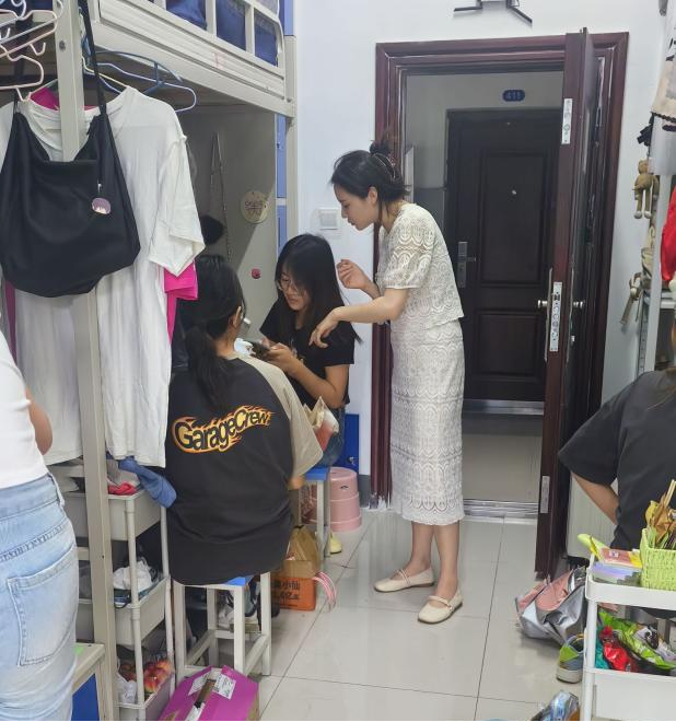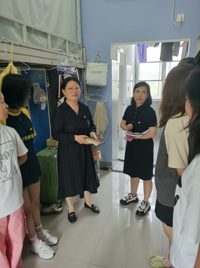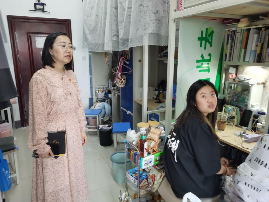 寝室是老员工生活的重要场所,也是党员进寝室工作的重要阵地。江莲老师从生活方面详细询问并了解同学们的生活情况,关心他们的饮食起居和生活细节,告诉员工要经常开窗通风,维护好个人卫生,确保寝室环境干净、整洁、舒适,同时倡导寝室成员之间相互关心、相互帮助、和谐相处,共同营造温馨、舒适的寝室环境。