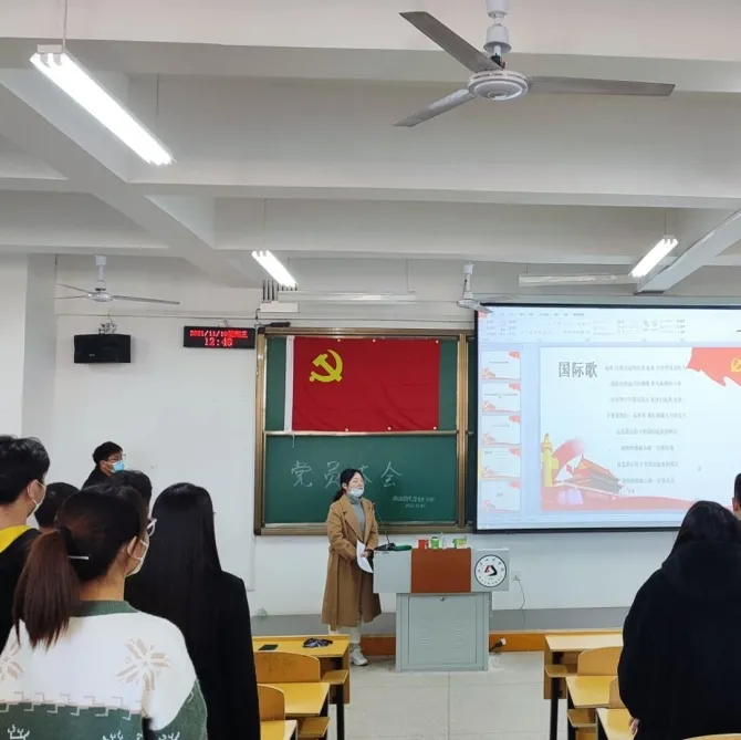 结果公布完毕,随监票员嗓音的落下,参会人员全体起立,共同唱起《国际歌》,曲调慷慨激昂,歌词振奋人心,现场人员情绪饱满,将歌曲唱得铿锵有力。会场气氛庄严肃穆,在场党员们气势雄浑。希望各位同志牢记的入党誓词,践行入党初心和使命。