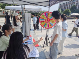 活动现场创新设置四大互动环节:“法条粘贴竞赛”让同学们用名词卡片拼贴法律语句,在创作中感知民法典逻辑;“寻找法条”通过法律场景图片引导精准匹配条文,拉近法典与生活的距离;“民法典顺口溜”以朗读法条强化记忆,“转盘答题”则用趣味竞答检验知识储备。完成全部环节的同学可集章进行签到与挑选小礼品,在寓教于乐中实现“法治观念入脑入心”。