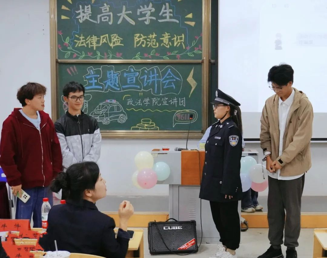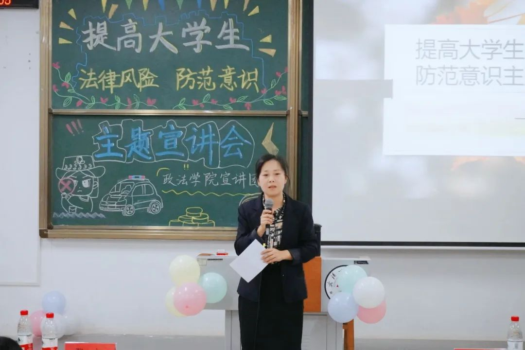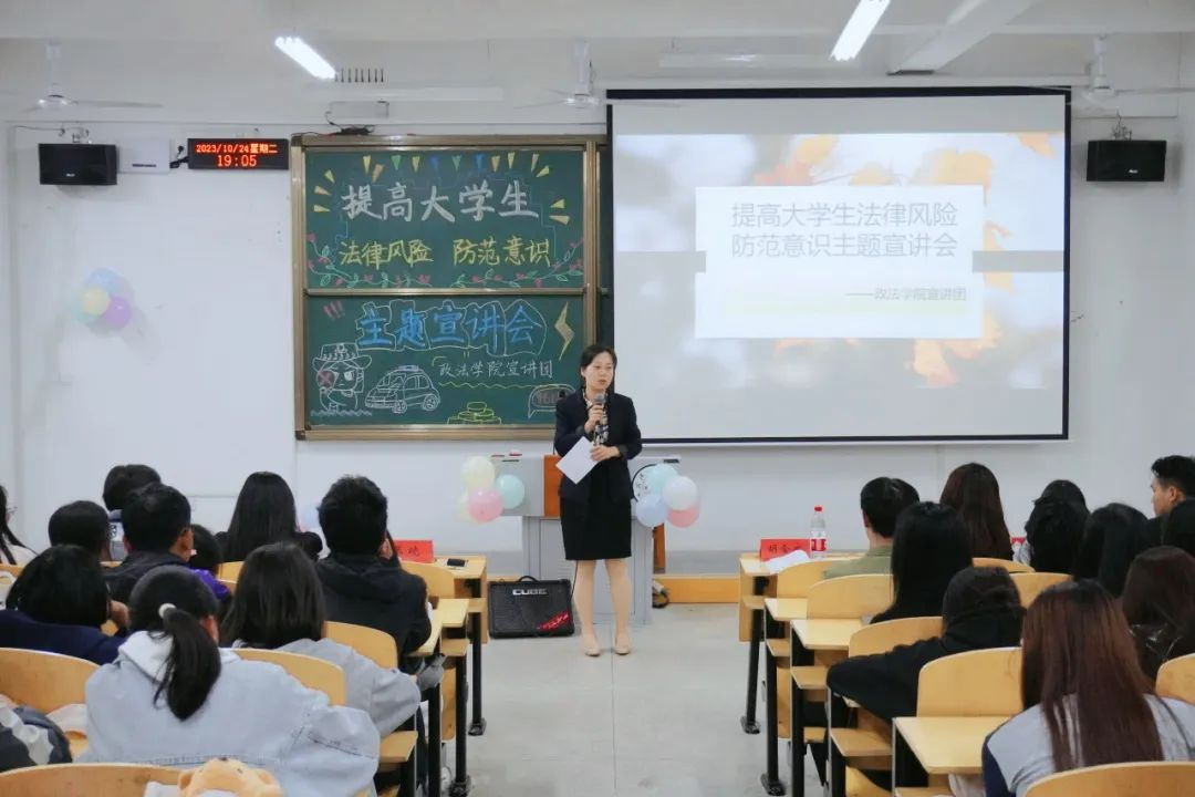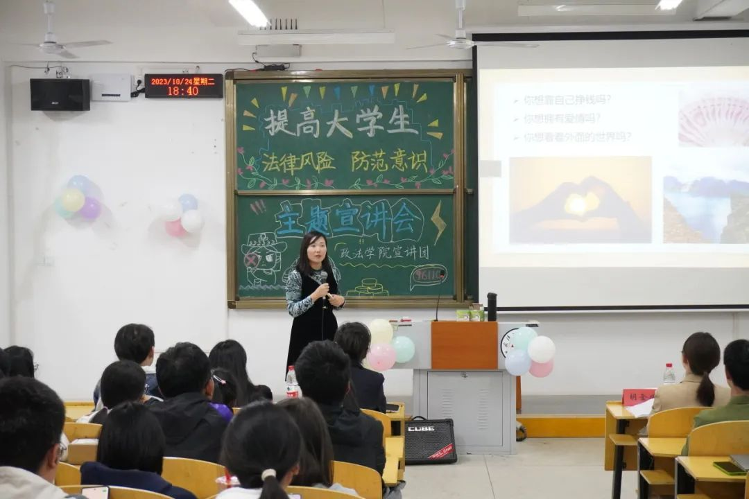 紧接着,由太阳成集团tyc539法学教师江莲进行生动的校园法律知识宣讲。江莲老师首先围绕老员工最关心的三个问题:你想赚钱吗?你想拥有一场甜甜的恋爱吗?你想去看看世界吗?引出了今天的校园法律知识宣讲。正是因为我们刚刚步入大学,社会经验的缺乏,法律意识的淡薄,进而滋生出一系列的法律问题。
