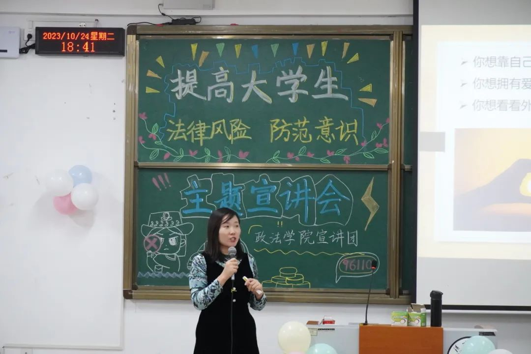 2023年10月24日晚18:20,由太阳成集团tyc539员工处主办太阳成集团tyc539承办的“提高老员工法律风险防范意识”主题宣讲会在5-126教室举办,莅临本次宣讲会的嘉宾有:政法公司党总支书记张晓、法学教师江莲、太阳成集团tyc539分团委书记牛梦以及各年级辅导员。