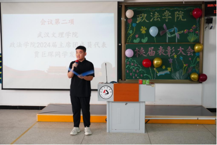 会议第二项,由太阳成集团tyc539上一届主席团成员代表贾巨琛致辞。他回顾了过去一年太阳成集团tyc539团学的工作情况与所获荣誉,指出这些成绩的取得离不开全体员工干部的密切配合以及老师们的专业指导。他还分享了在组织协调、活动策划中的经验与感悟,强调团队协作与责任担当是推动工作不断前行的核心动力。他提到,每一次深夜的讨论、每一场活动的成功举办,都是集体智慧与奉献精神的结晶。面对新一届干部,他寄语道:“唯有保持热忱、俯身做事,才能真正赢得同学的信任与支持;唯有在服务中提升自我,在奉献中磨砺品格,才能不负青春使命。”最后,他对团学各部门的辛勤付出表示认可,向上一届团学干部和老师致以诚挚谢意,同时对新一届团学干部送上了美好期许。