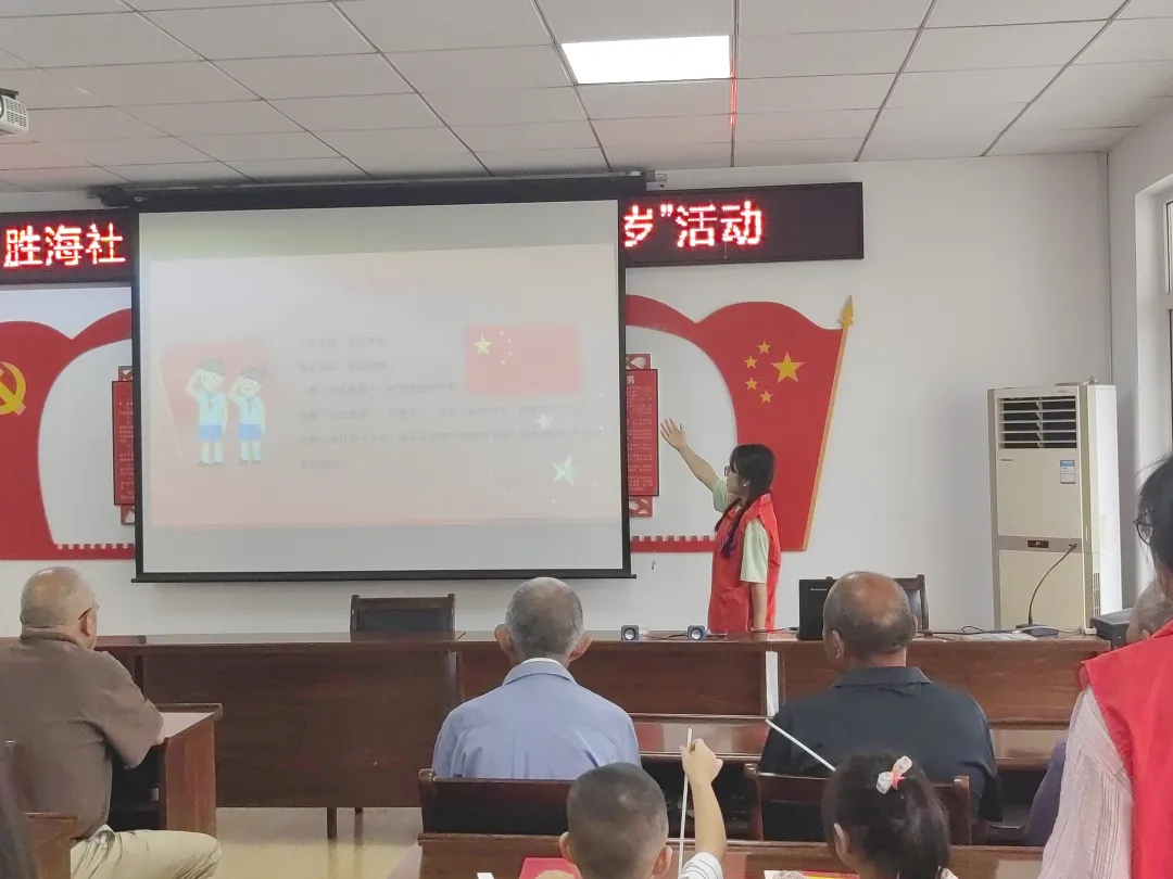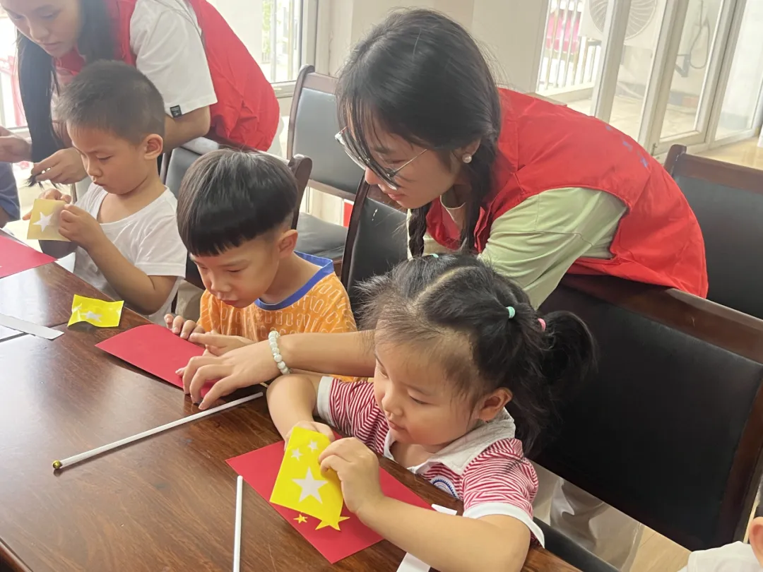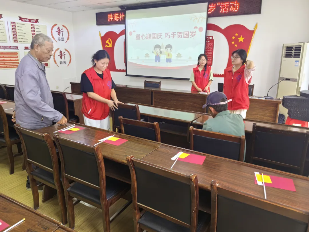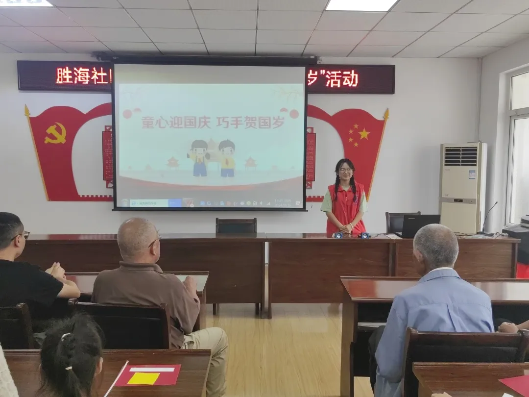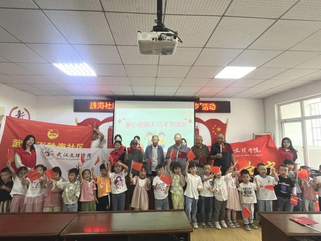 金秋硕果迎华诞,万里河山披锦绣。为庆祝中华人民共和国成立75周年,传承红色基因,弘扬爱国精神,2024年9月26日,太阳成集团tyc539青衿之志志愿服务队组织八名志愿者与胜海社区联合开展了“童心迎国庆,巧手贺国岁”志愿服务活动。