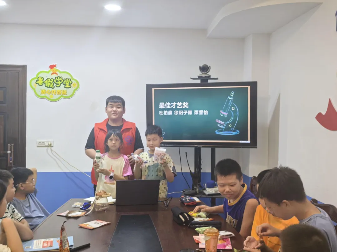 兑换到自己心仪的奖品后,小朋友们的脸上都露出了满意的笑容,趁着课间把玩着自己兑换的小礼物,欢乐的笑声充满了“暑期学堂”的教室。