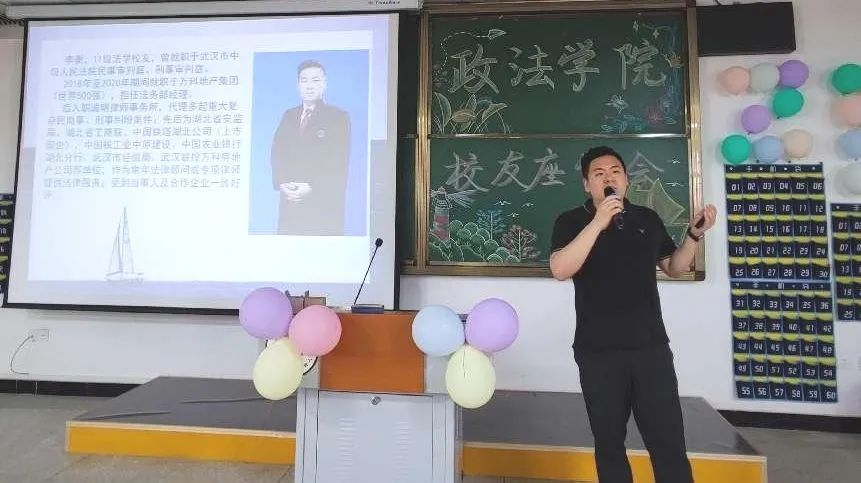分享内容:李衡律师细致分享了步入社会后的点点滴滴,通过不断努力,脚踏实地、一步一个脚印地到达今天的高度,面对同学们的疑问学长耐心回答,在校员工的第一要务就是学好专业知识,现在网络发达,同学们可以合理利用网上的众多资源不断提升自己。