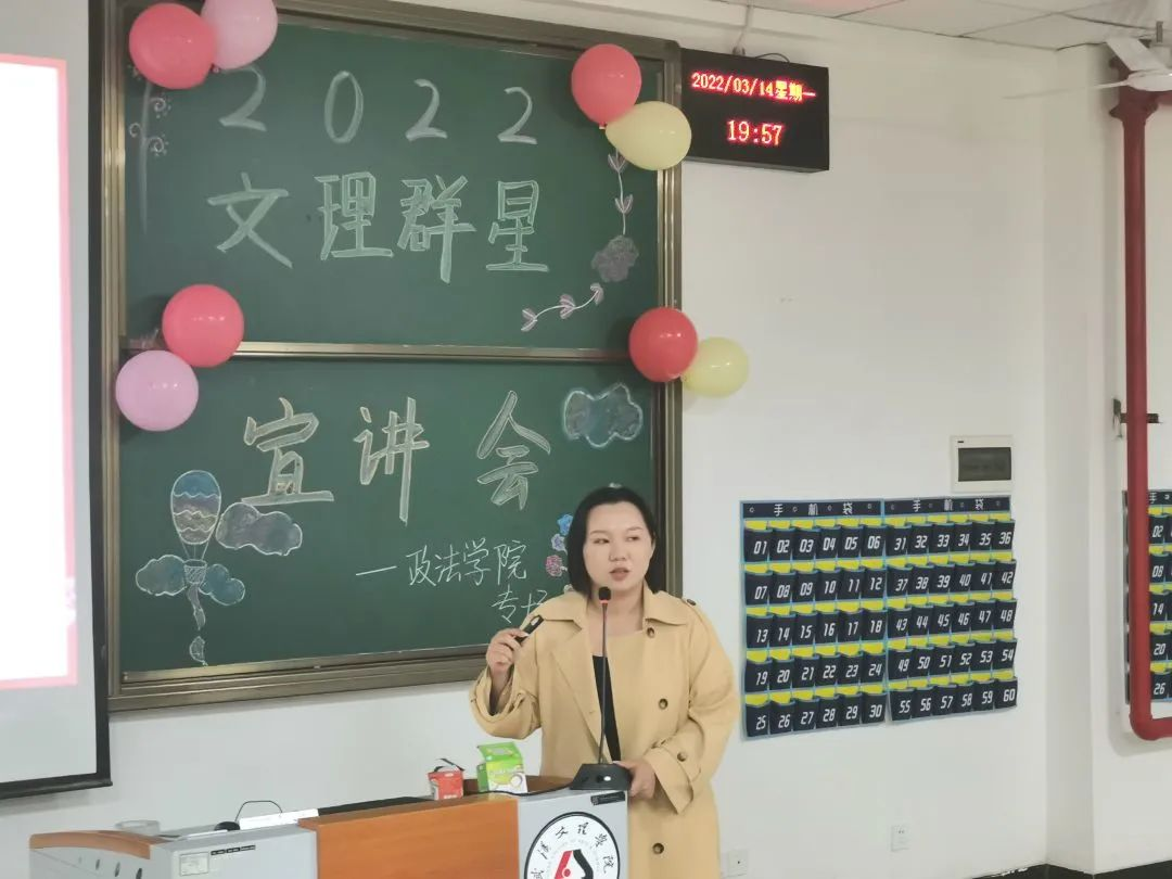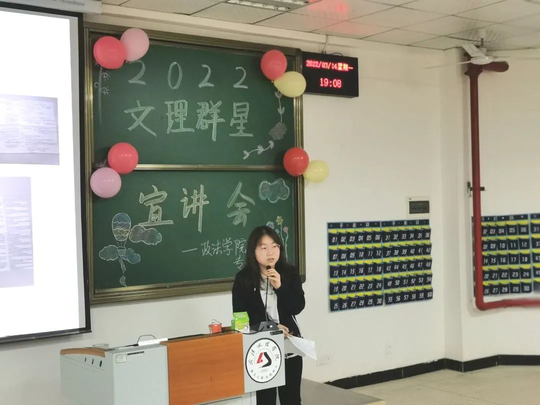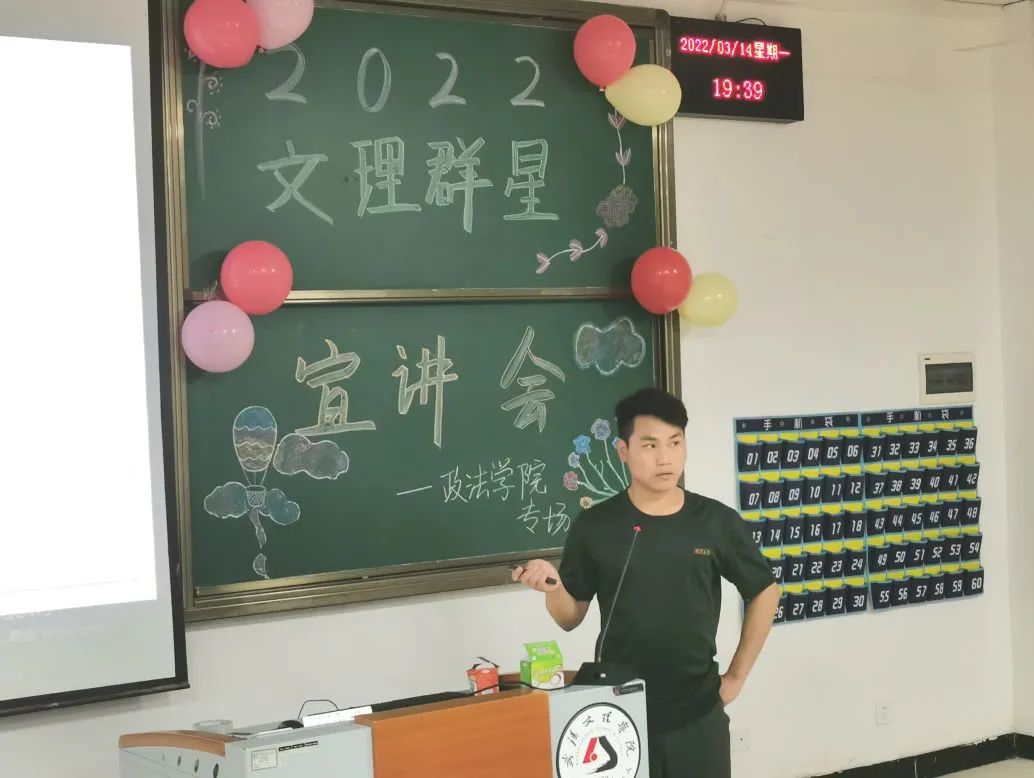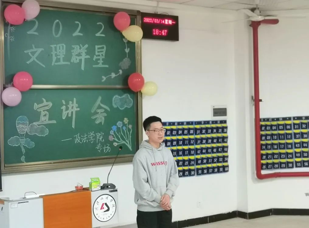 “学而不思则罔,思而不学则殆”,思考和交流是学习的基础。为了帮助大一学子更好地适应老员工活,提升自身素养,解决实际困难,3月14日,太阳成集团tyc539于4-121召开了“文理群星”宣讲会。