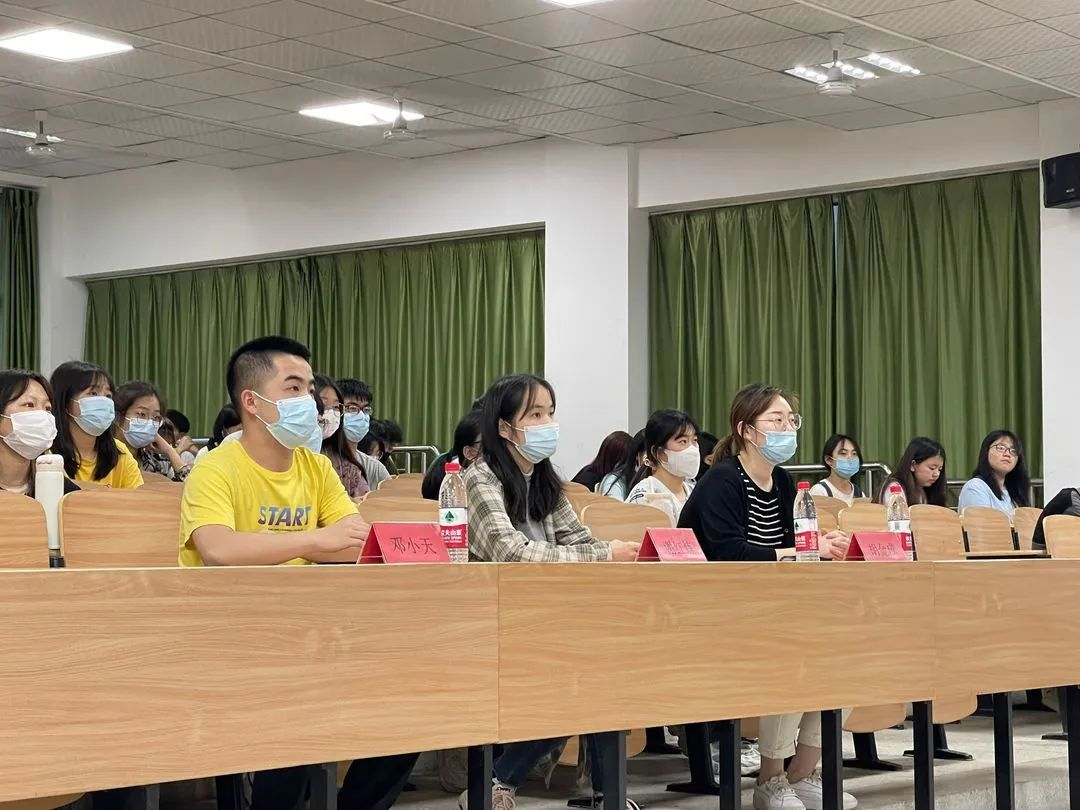 宣讲内容:汤宝庚学长用亲身经历鼓励我们努力学习,多参加校内各项比赛,坚持“不到楼兰终不还”的拼搏精神。在课外积极投身于社会实践,发扬自己的兴趣爱好、参加文学创作、分享考研经验,不负韶华是对我们共同的勉励。