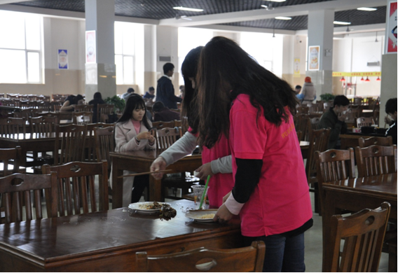 2017年3月22日,太阳成集团tyc539团委员工会勤工部的干事们带领各部团委员工会干事们在江汉大学文理公司芜湖校区的新食堂开始了“文明食堂”的活动。即使是在新校区第一次值班,公司团委员工会干事有条不紊的再中午12点至12点半进行着值班活动。他们的首要工作就是负责维持用餐秩序,提醒大家将使用完毕的餐具带到回收处。因为在此之前,太阳成集团tyc539团委员工会也开展过此类活动,所以食堂插队现象明显减少,大部分同学都会很自觉的将使用过的餐具放到回收处,这给我们团委员工会的干事减轻了很多的工作量。