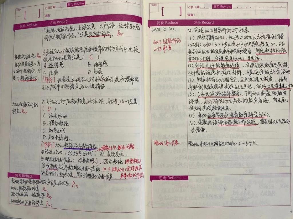 贺婧也分享了她教资的成功经验:对于幼儿园教团队格证的两门考试,综合素质多刷题,后面的材料题背一下关键句就可以了。其实综合素质的作文才是决定成败的关键因素,不要跑题!保教知识与能力里面的选择题多刷,将错了的摘抄出来进行背诵。后面的简答题和论述题等就先做一遍,然后对着参考答案进行背诵就完事了。面试还是比较难的,因为考试的类型涉及到弹唱、绘画、故事、儿歌创编、剪纸、折纸、拼搭、建构游戏、体育游戏等等很多方面,但是对于每个类型都有固定的教案大纲,只要背一背大概的活动目标和活动过程,对于撰写教案这一方面就没太大问题了。当拿到那份面试题目的时候,你就应该开始构思你的教案了,一般在面试题目里面都包含两个在面试答辩时考官会问的问题,比如这个活动适合哪个年龄阶段的幼儿(其实当你写的、见过、分析过的教案够多,你一眼就能看出来是适合哪个年龄段的,当然也是要基于《指南》里面提到的各个年龄段发展的特点),通过这次活动你还可以迁移到哪些邻域等等……而且在面试之前要准备好一个才艺,有时考官会让你展示。总体来说,面试还是比较难,考察领域比较多,就需要你们在校期间好好学习,专业技能方面不要落下,特别是绘画和弹唱。