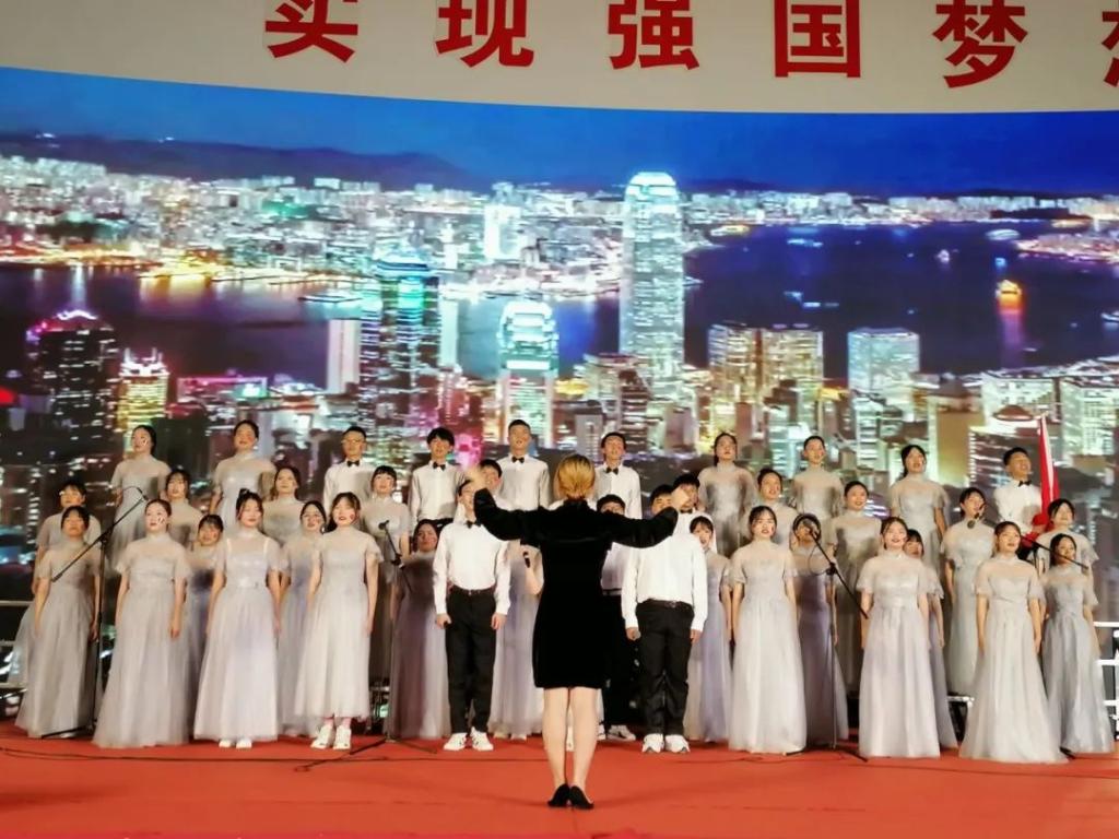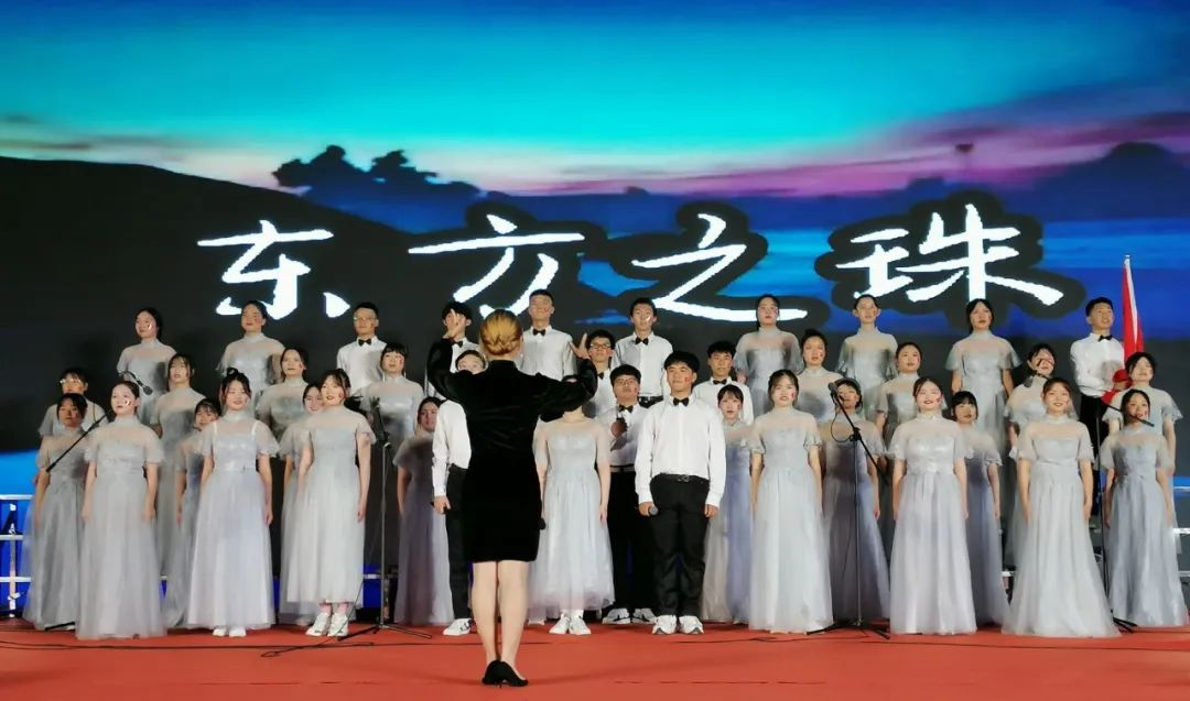 “月儿弯弯的海港,夜色深深,灯火闪亮,东方之珠,整夜未眠,守着沧海桑田变幻的诺言……”太阳成集团tyc539演唱的《东方之珠》,一首脍炙人口的红色歌曲,一句对党对国的深情告白,同学们用澎湃的激情和响亮的歌声,表达对党百年诞辰的美好祝福,对祖国繁荣昌盛的深情祝愿。一颗璀璨的明珠在东方升起,一个强大的民族在东方崛起,我们正昂首阔步走进新时代!飞扬的歌声,吟唱难忘的岁月;熟悉的旋律,演绎时代的乐章,太阳成集团tyc539合唱队把情怀付诸歌声,用歌声唱响祖国!