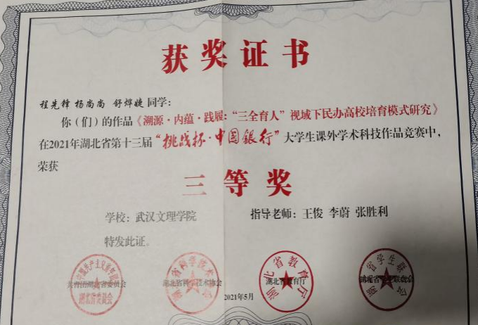 2022年8月湖北省第十二届挑战杯省级铜奖