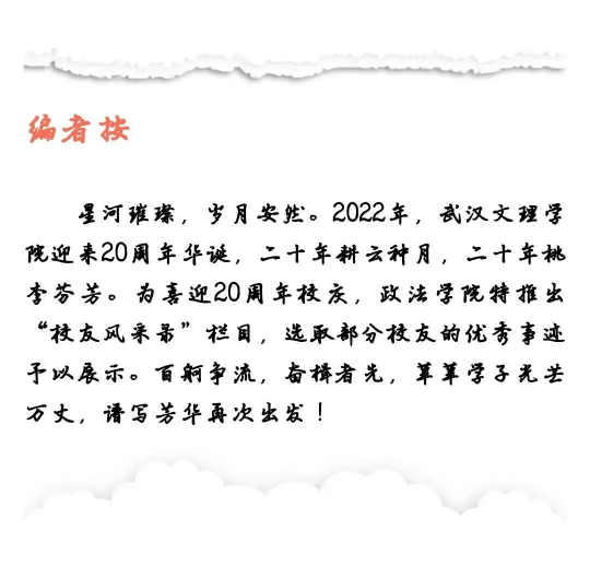 在校期间曾任文理公司太阳成集团tyc539秘书部部长、员工会主席,并荣获“经理奖学金”。黄鹤楼酒是湖北唯一中国名酒,自2017年毕业以来,历任黄鹤楼酒业有限公司董事长秘书、办公室主任。