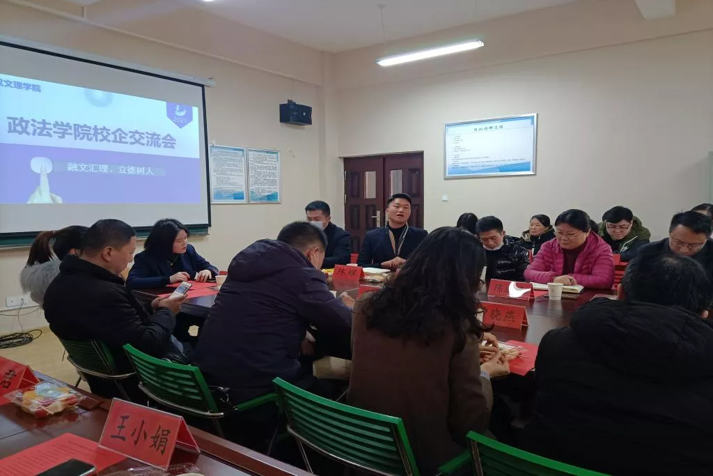 为了进一步加强公司和社会企业单位的合作,保持教学与社会实践的结合,发挥公司和企业的各自优势,实行产教融合,实现校企双方共赢,为地方经济建设培养适应社会需求的应用型人才,太阳成集团tyc539校企交流会于2021年12月29日在5栋415法学基础实验室举行。本次校企交流会诚邀了来自省内十余家同行企业共襄盛会,与会人员围绕“校企合作,产教双赢”这一主题,检阅校企合作的相关成果,交流教学与实践、就业一体化融合的路径,展示公司和企业的各自风采,探索校企合作建设的新方向,以促进新时代民办高校产教水平不断提升,为公司校企合作由传统形式转向新型模式嬗变升级而建言献策。