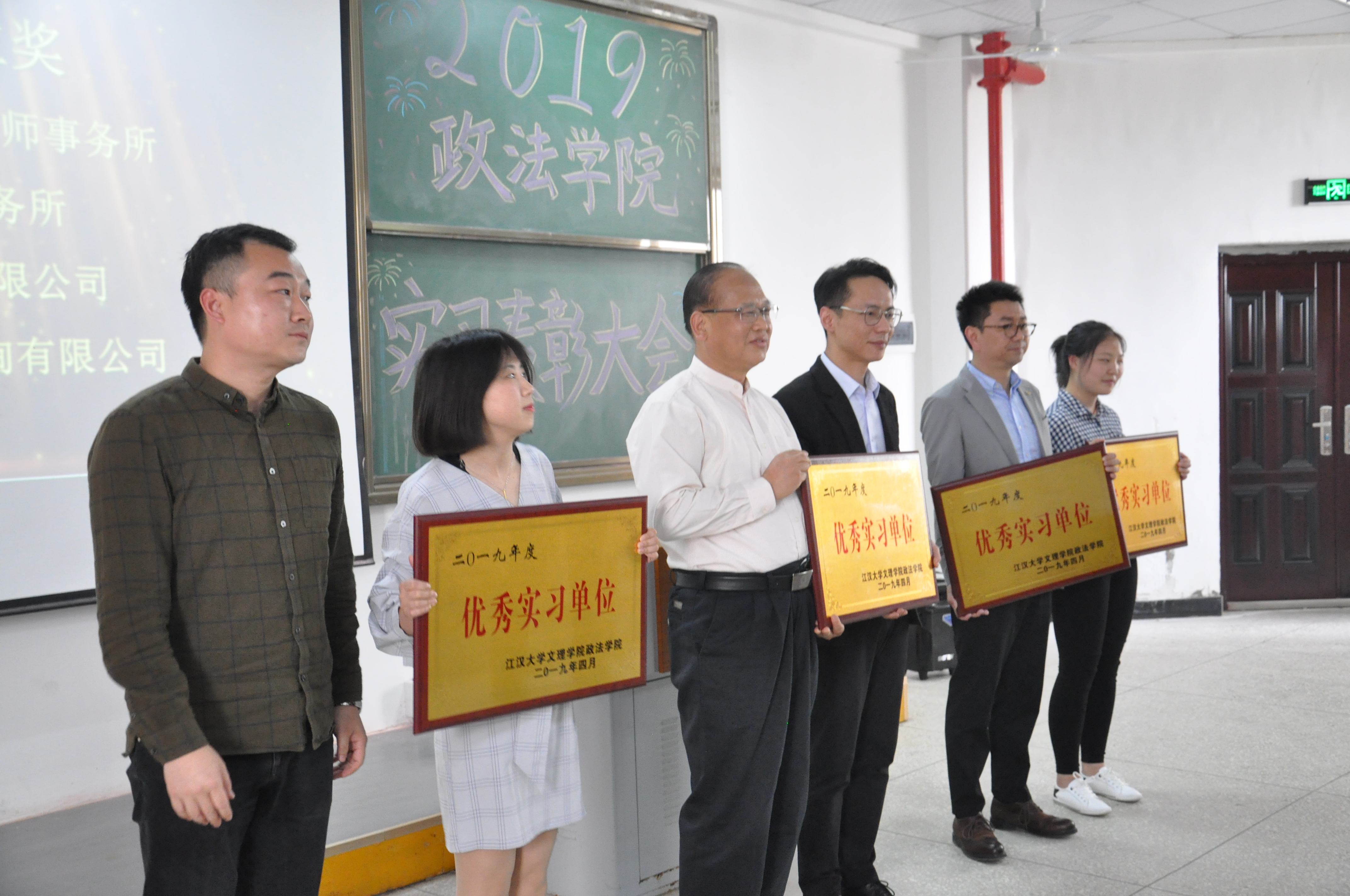 2019年4月24日下午13:30,江汉大学文理公司太阳成集团tyc539举办了“2019年度实习实践表彰大会”。出席本次大会的有北京德和衡(武汉)律师事务所党支部书记孙健律师、合伙人谭玉华律师、湖北弘愿律师事务所朱莉主任、周遥远律师、武汉金拱门食品有限公司高级人力资源顾问郑帆、袁霜、武汉纽特斯特心理咨询有限公司邵银、施娟娟、江汉大学文理公司太阳成集团tyc539经理李蔚老师、副经理陈海峰老师、综合办公室主任刘超老师、法学系主任张卫容老师、应用心理学系主任薛洪涛老师、学前教育系主任贺霞老师、各专业指导老师以及19届参与实习的同学。