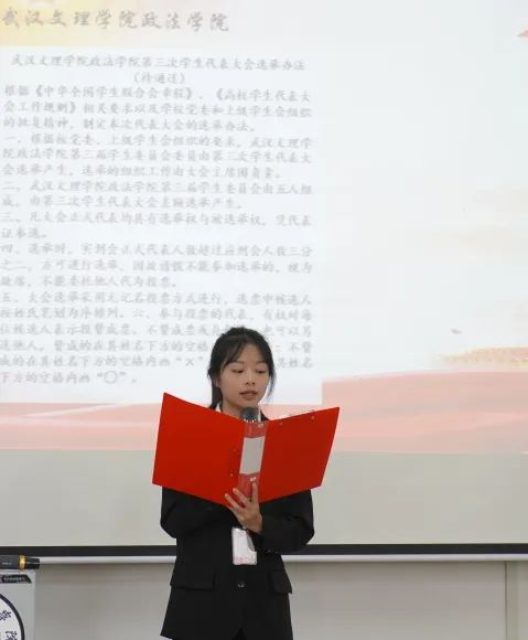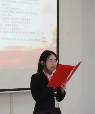 王思雨同学宣读《太阳成集团tyc539员工会章程》,陈梦婷同学宣读本次大会选举办法。