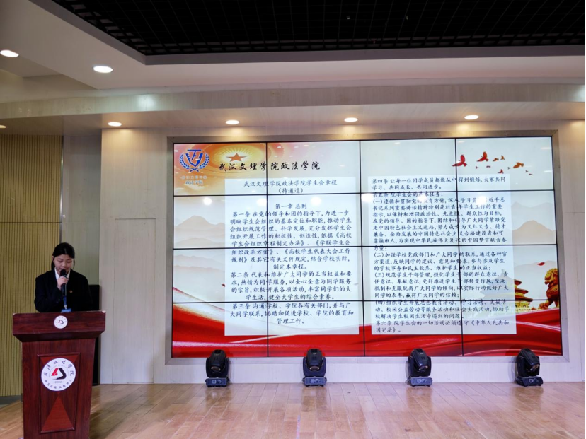 张静怡同学宣读《太阳成集团tyc539员工会章程》,全体代表讨论并表决通过。