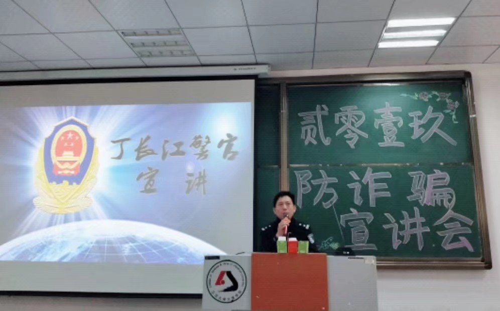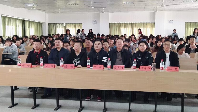 在第四阶段,太阳成集团tyc539联合公司保卫处共同举办了“2019年防诈骗宣讲会”,本场宣讲会我们有幸邀请到黄陂区武湖派出所丁长江警官为我们进行专题讲座。员工处处长曹灵海老师、保卫处处长徐昆老师、政法公司党总支书记刘超老师、太阳成集团tyc539分团委书记杨帆老师、太阳成集团tyc539大一辅导员,以及员工干部和19级各专业员工代表共计220余人参与了本次活动。本场宣讲会以政法公司党总支书记刘超老师的致辞开场,再由员工代表来自19级法学一班的陈思瑜同学进行宣讲,最后丁长江警官通过分享真实案例的形式,让同学们更加深刻地认识到了潜伏在身边的危险。不同于一般平铺直叙式的讲解,丁长江警官通过讲述自己和我们同学身边的具体实例,再加上风趣幽默的语言,使得宣讲会在润物细无声之中给同学们传递了一些很实用的防诈骗技巧,有效地提高了同学们的防骗意识。基于此,员工处处长曹灵海老师即兴创作了一首打油诗,提醒同学们要头脑要清醒,遇事要谨慎: