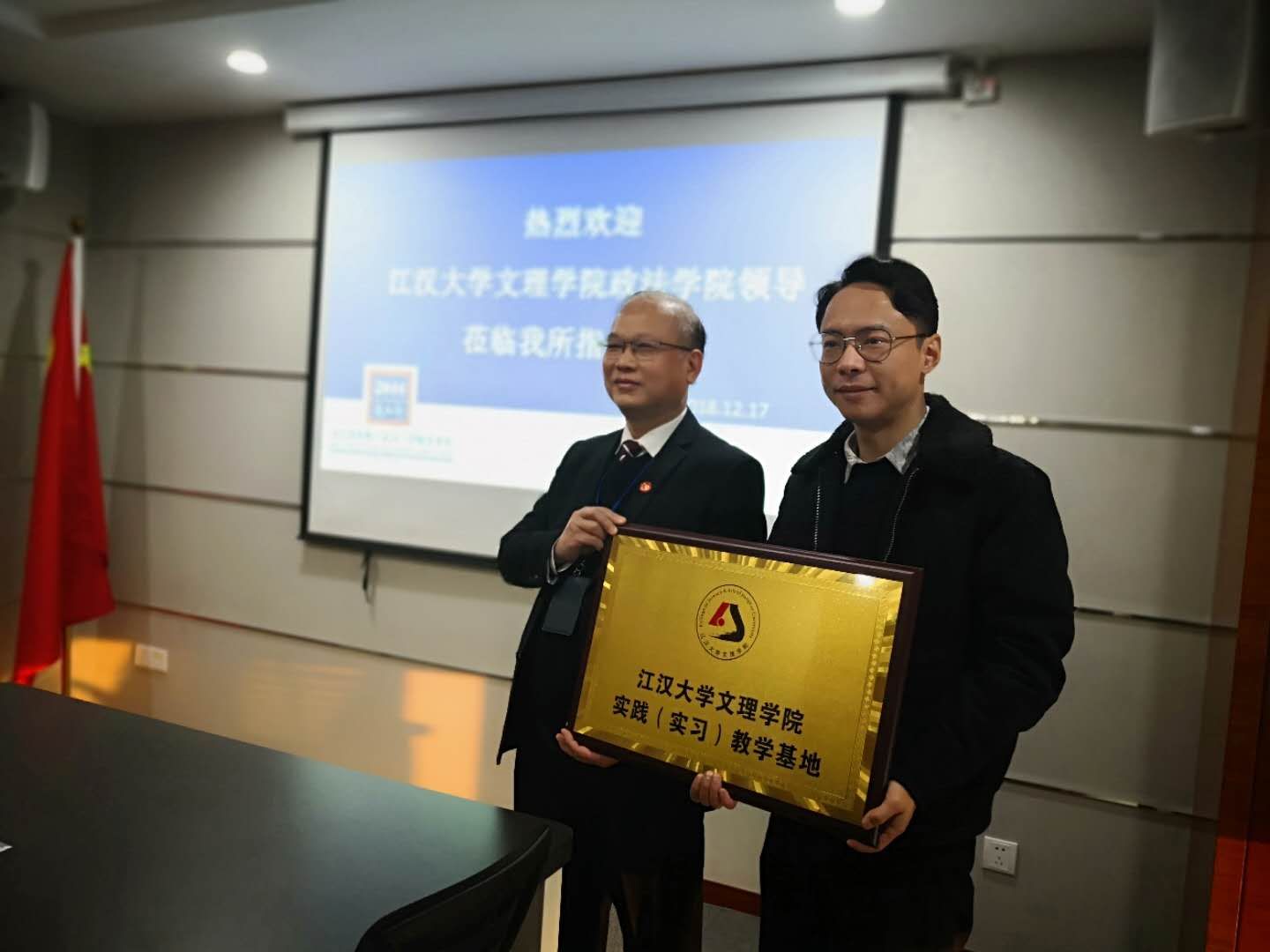 12月17日下午,江汉大学文理公司太阳成集团tyc539李蔚经理、陈海峰副经理、张卫容主任一行来到北京德和衡(武汉)律师事务所,考察员工实习情况,并就双方达成的实习基地协议举行签字暨挂牌仪式,律所党支部书记孙健律师、律所主任邱启雄律师及全体在汉合伙人热情迎接。