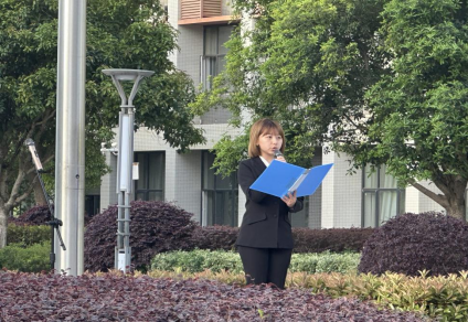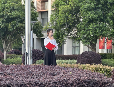 24级商务英语班的崔博雅同学作为外国语公司员工代表进行发言,她说道:“国家安全始于心,校园安全践于行”。临近4月15日国家安全日,崔博雅同学呼吁全体同学们共同行动,在对自身安全负责的同时,还要做校园安全的传播者,一起携手共建安全校园,用责任和担当筑牢校园安全防线。