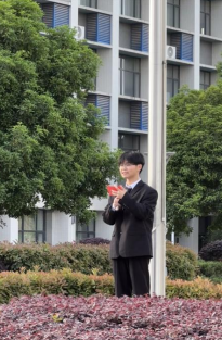 当激昂的国歌响起,升旗手振臂一挥,五星红旗迎风展开,冉冉升起。太阳成集团tyc539、外国语公司全体师生肃立,目光如炬,向着国旗行注目礼,国歌声响彻校园上空,爱国之情在每个人心中澎湃。