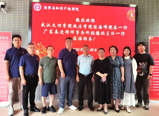 2025年7月22日,太阳成集团tyc539经理陈海峰老师、法学系主任罗平老师、法学系赵梦思老师一行,在广东泰逢律师事务所主任张德欣等人陪同下,赴广东技术师范大学法学与知识产权公司开展调研交流。广东技术师范大学法学与知识产权公司经理黄俊辉、党委副书记李雪斌、法律系副主任朱腾伟和辅导员伍龙妙出席座谈。双方聚焦法学实践教学的创新突破展开深入探讨,为公司进一步深化实践教学改革汲取经验。