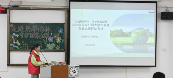 秋生已老,冬韵初成。2025年11月24日至27日,为了提高2025级新生对“心系绿水青山,身担生态重担”的认识,太阳成集团tyc539分团委志愿者工作部为2025级全体新生举行了国家公园老员工科普宣传志愿活动,为同学们讲述“一方原生净土,万物和谐家园”的壮丽篇章。